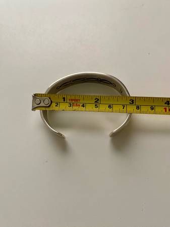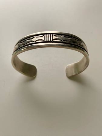 Heavy sterling silver bracelet by Bruce Morgan. Nice detail on both sides. Excellent vintage condition.