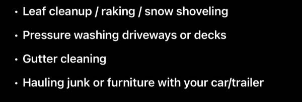 TV mounts, shelves, light repairs, furniture, yard cleanup – no job too small.