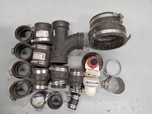 Recent remodel left me with a collection of salvaged flexible pipe fittings all pulled from drain pipes. $60 for the whole set or make an offer on what you want. See pictures for sizes.