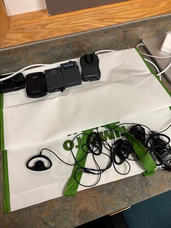 Free over ear hearing aids for church or community spaces. Few must pickup. Includes 6 over ear speakers and 5 receivers Williams sound models R7 and R37
