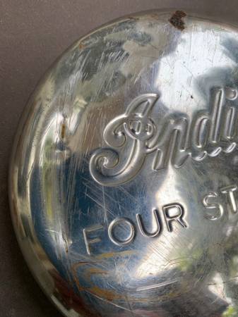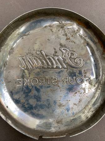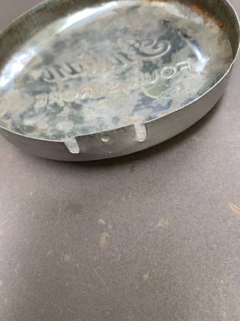 Has dent on left side and rust spot at top middle. Diameter is 4 3/4 inch. Depth is 3/4 (I think). $13 cash. Motorcycle 58hh