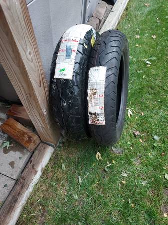 Set of new Bridgestone Exedra front (150/80-16) and rear (150/90B15 74V) tires ($420 value)