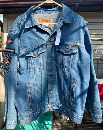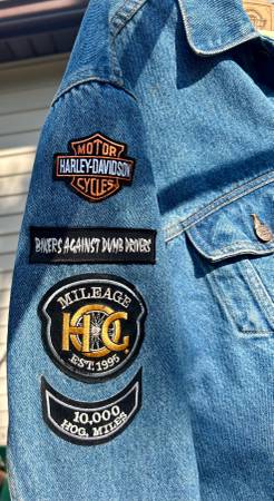 Nice vintage Dickie's jean jacket with Harley patches, excellent condition!