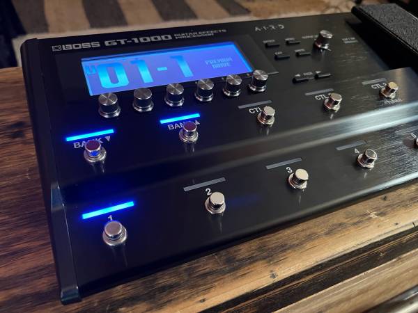 Selling my Boss GT-1000 multi-effects processor in excellent condition. Gently used in a smoke-free studio. Includes the original Boss CB-ME80 soft case, designed to fit the GT-1000 perfectly and provide great protection for transport or storage. Includes original power supply.