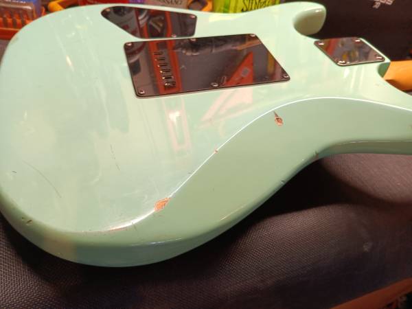 Freshly set up and restrung Bently-- perfect for a beginning player. Neck is straight, all frets good, electronics noisefree. The tuners are good and bridge adjusted for intonation. Body has a few paint chips and there is a little wear on frets 1-3. Definitely needs a second life with a new aspiring owner. Comes in Fender gig bag. Cash, $100 available locally in Twin Cities.