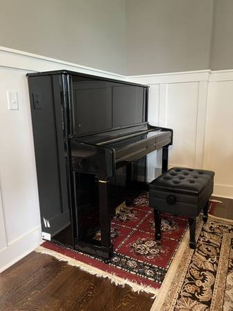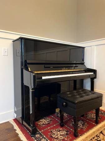 Near new Schiller Upright Piano on sale, $1900 only. Bought brand new from the Store for my daughter's piano class. Original price $5400 + tax. Comes with an adjustable bench. Also share a CD player...