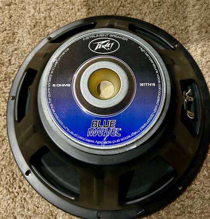 Peavey Blue Marvel 12in 8 ohm Speaker 30777410 Part no: 30777410 Model 12830P American voiced guitar speaker, as fitted in many current generation Peavey amplifiers 12" diameter 8 ohm impedence 75W...