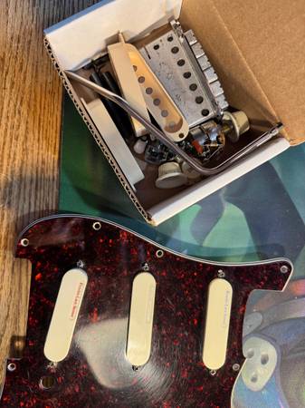 Up for grabs: Early 90s lace sensor pickups - red/silver/blue, the tortoiseshell guard up for grabs too. Early 90s deluxe plus floyd rose trem, block, bar, springs Modern era fender 57/62 pickups...