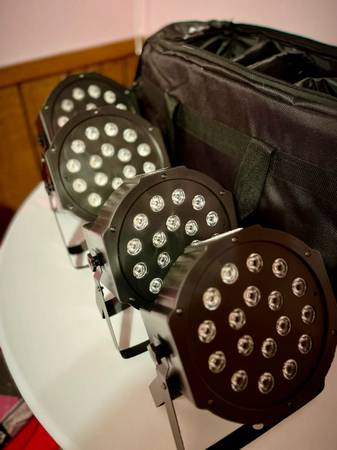 Rockville Lighting 4-LED Par 50 wireless light kit. Great for DJs, bands, photo and video production. Comes with three a/c adaptors/chargers, and four remotes. $125 OBO