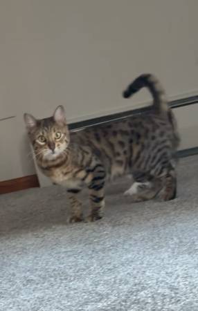 Male Beautiful Bengal cat available. Super active, playful, and healthy with a stunning spotted coat. Great personality and loves attention. Message me for details
