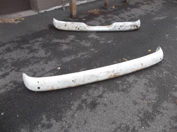 Front and Rear bumpers. 2nd design 1955-1959 GM Chevy and GMC Pickup trucks, bradsparts. USED. Old original bumpers. ONLY $200 For BOTH.