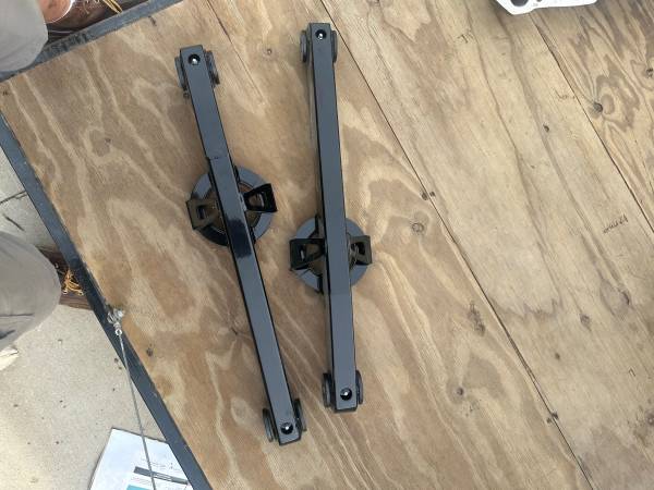 UMI Performance Boxed rear lower control arms / trailing arms for GM B-Body's: for 1959 to 1964. I purchased them for an Impala. Should also fit Biscayne, Bel Air, Catalina, Dynamic 88, Buick Lesabre, Invicta, Bonneville, Catalina (please do your own research). They have greasable polyurethane bushings with zero fittings to eliminate squeaking. Ordered for a project that has been sold. These lower rear control arms are new and have never been installed. UMI Performance. Currently for sale on the UMI Performance website for $349+$20 for shipping and tax. Approximately $394 out the door. Small scratch from storage. These are absolutely brand new. UMI Performance part number 3650.