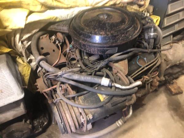 Chevy 350 4 bbl with turbo 350 trany. Complete from air cleaner to pan with fan, alternator, AC, steering pump, carb, starter and misc. hoses. still bolted to original 350 turbo trany. Runner just as it came out of car..