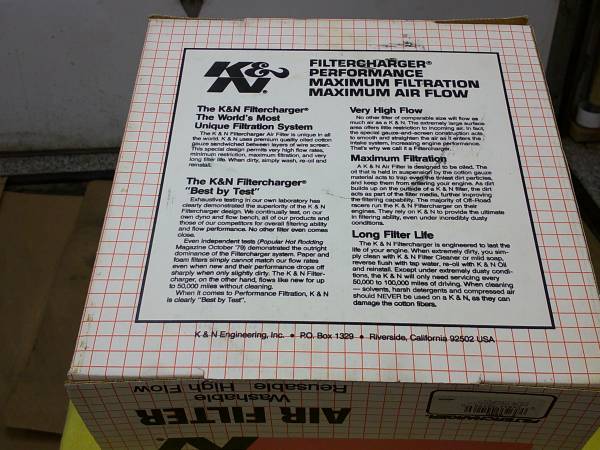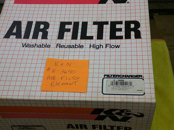 New K&N air filter element # E-3650 for use in air cleaner #58-1150 or #58-1170 or other custom applications. Air filter element measures 9" outside diameter - 7 1/2" inside diameter and is 5" tall. It's pre-oiled from the factory and ready to go. Cash only. Please call John at show contact info
