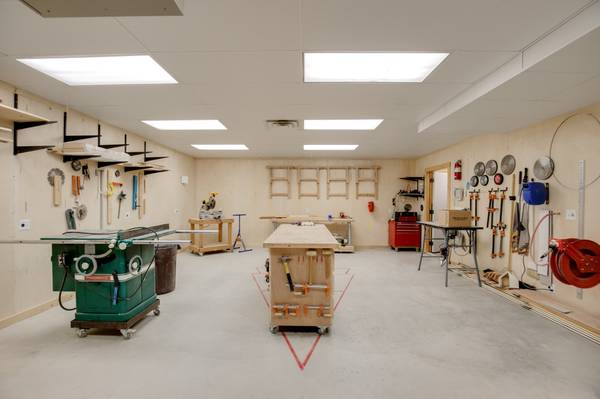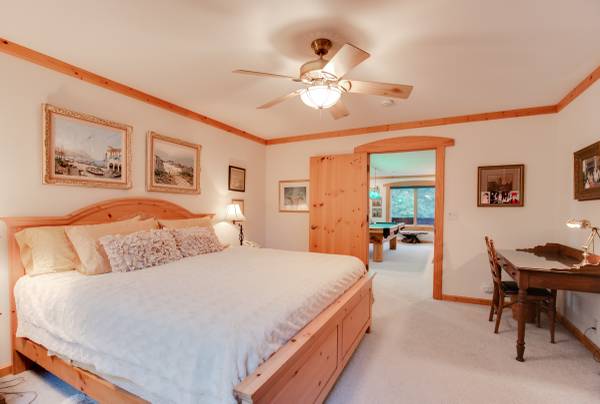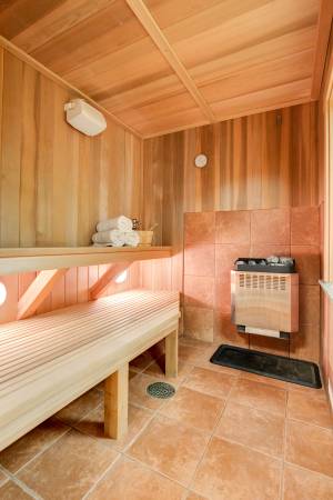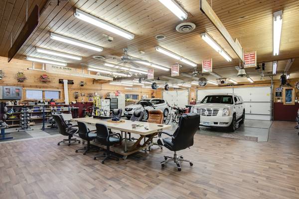 A luxurious primary suite highlights the home, featuring a spa-like bath and expansive dressing room with custom built-ins. Additional amenities include a sauna, workshop, cedar closet, and six-car garages—attached (2337 sq. ft.) and detached (1,440 sq. ft.)—all heated, insulated, and fully outfitted.