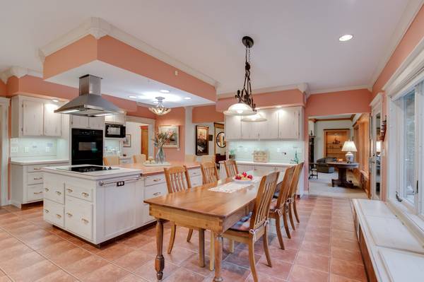 Crafted with exceptional materials and bold architectural detail, the home features rich natural woodwork, nine-foot ceilings, wide staircases, and in-floor heating in key areas. The gourmet kitchen boasts 14-inch deep cabinetry, heated tile floors, Norwegian tile backsplash, double oven, and a large center island. A formal dining room with cherry woodwork and a four-season porch enhance the living space.