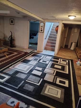 875 sq foot furnished basement for rent, move in ready. Has complete furniture and TV with cable, in main room. Washing machine and gas dryer. Bed, is queen, some furniture in the bedroom. Tiffany lamps, quite cozy. I occupy the first floor with my dogs and cats. Gigantic big yard. Rent as follows: Deposit of 900.00 with First month rent of $900.00. utilities are $90.00 that includes garbage, gas, electric, water. Shared kitchen on First floor, bathroom on First floor with Spa Tub. Basement has private bathroom, toilet and Vanity Sink. Total move in cost of $1890.00. One person. Additional person another $150.00.