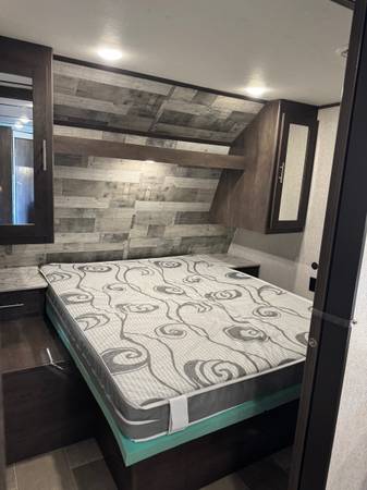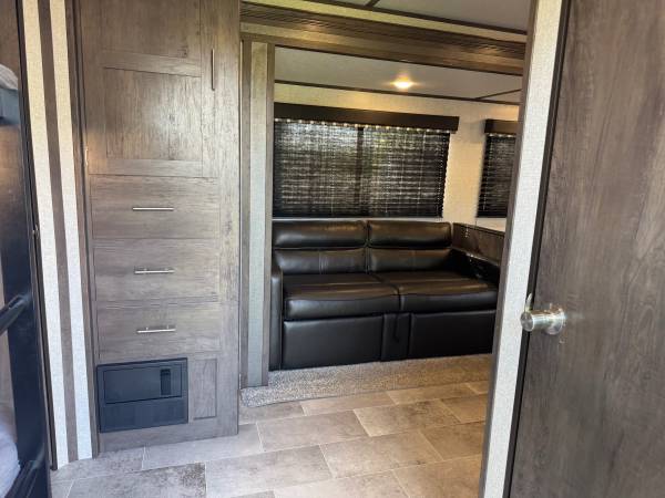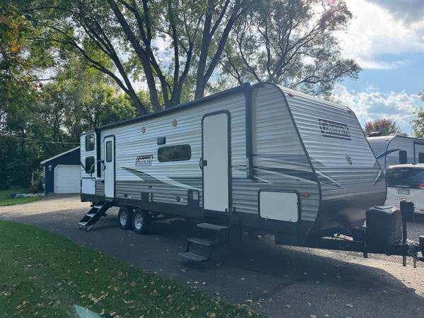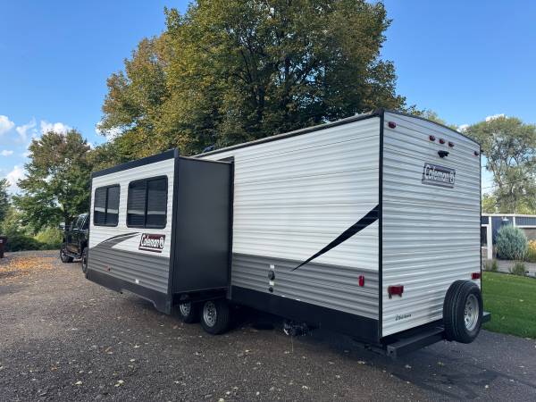 Hail Sale! 2021 Keystone Coleman Lantern 28ft Travel Trailer with slide out, bunk beds and outdoor kitchen. Model 285BH. Was $21,995. Now only $15,995 because of light hail dents on the side.