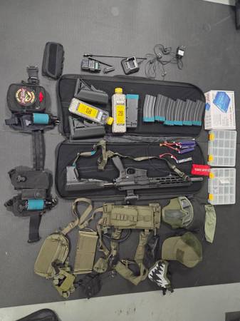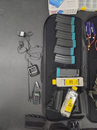 Includes 5 working midcaps, 4 good LiPo batteries, iMAX B6-AC smart charger, chest rig, and Baofeng radio.