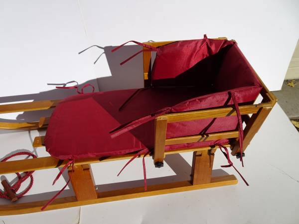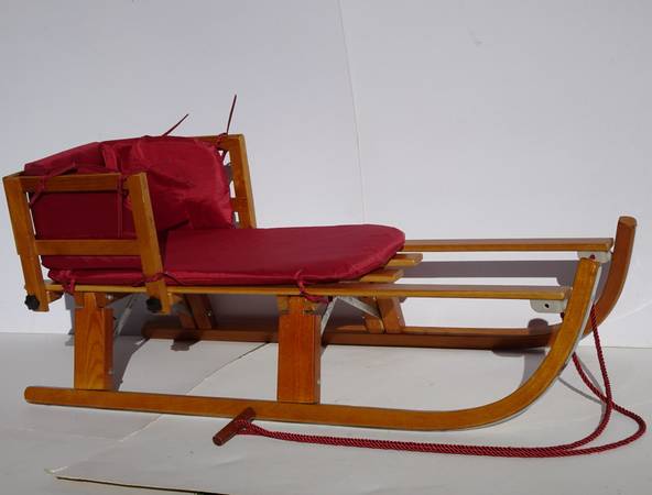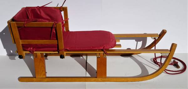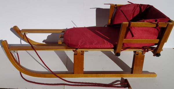 - Solid Oak wood construction sled includes an easy to assemble wood back rest, stainless steel runners and a comfy cushion pad for the bumps.
