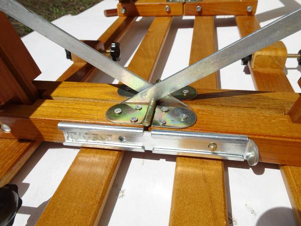 Features: Folding, Solid Wood - Oak, Sliding Push Button Lock Mechanism, Super Simple Assembly, Easy Flattening for Transport / Storage, Solid Metal Screws, Solid Metal Bolts for Back Assembly, plastic knobs, Security Feature - Push Button Lock, Security Feature - Steel Sliding Lock Bar, Stainless Steel Runner Caps, Cushioning Pad, Foldable