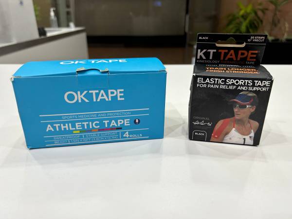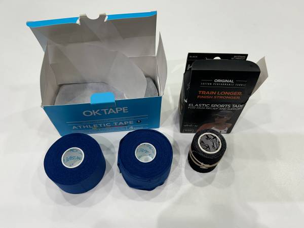 For sale is a nice combo pack of OK athletic tape and KT elastic sports tape. This is the perfect set for anyone looking to improve their athletic performance at an elite level. These tapes have been shown to improve workout effectiveness and recovery. Only a small amount was used and all five rolls are included.