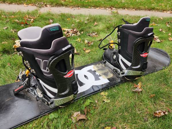Get out and hit the slopes this winter! Get this setup board and boots for $75, or I will split this up if needed. Boots only $50, Board only $50. This setup looks to be in good condition, but I have never used it. DC snowboard, Burton boots, Sims Link bindings, men's size 8 (US), 7 (UK), 41 (EUR). See photos. If you need more information, please ask.
