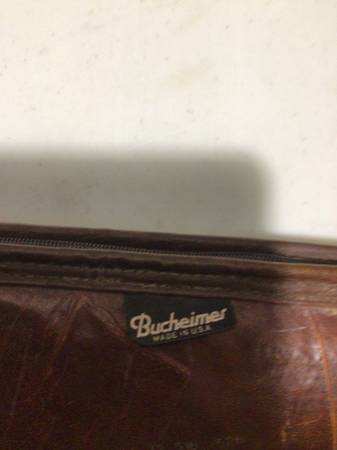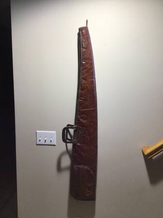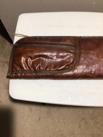 52” Bucheimer Leather rifle case signed Jim Catfish Hunter edition collectible Has zippered ammo compartment all zippers work Made in USA