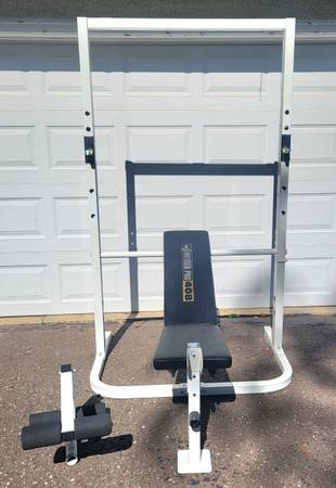 Weider Pro 408 Adjustable Weight Bench and Squat Rack *Bench is adjustable from decline to flat to incline. *Seat can be moved out of the way to use as a Squat rack *Comes with a Leg Curl /...