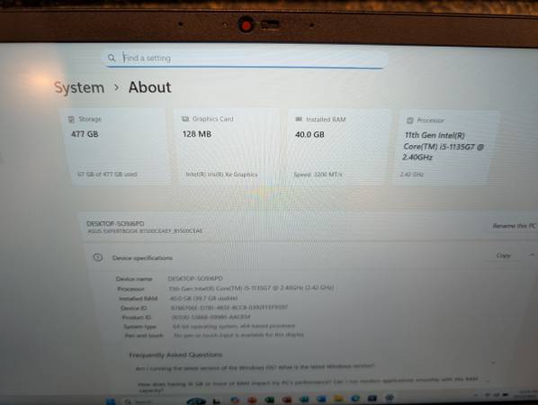 Selling my lightly used, excellent condition 2021 ASUS ExpertBook B1 (B1500CEAE). This business-class laptop works awesome and has been professionally upgraded to be a true powerhouse, perfect for demanding multitasking, professional work, or everyday computing.