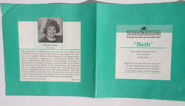 This limited edition hand crafted doll is from the Little Women series of fine porcelain collector dolls offer by Ashton Drake Galleries.