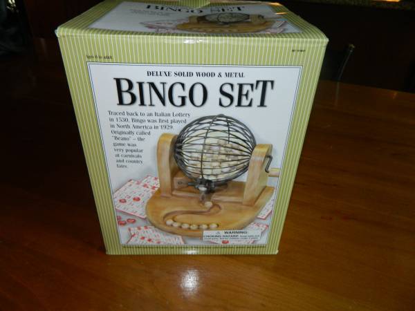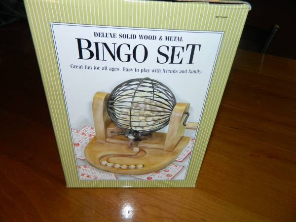 Deluxe Solid Wood and Metal Bingo Set for $20. Ages 6 to Adult. If interested, text or email.