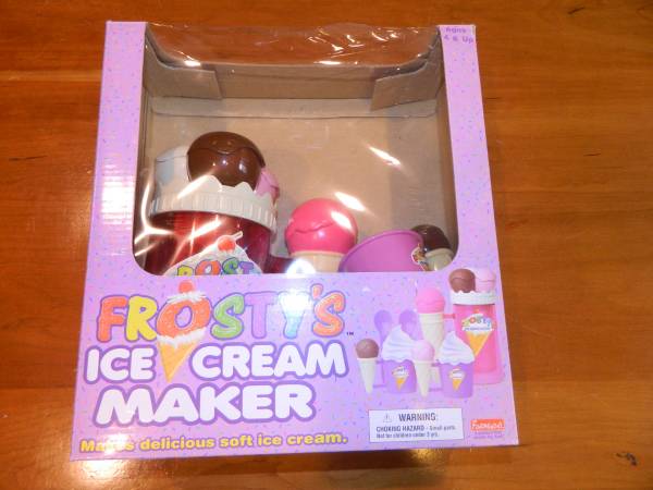 Unused Funomenon! Frosty's Ice Cream Maker Item #42000 for $10. Includes Ice Cream Maker, 2 Spoons, 2 Serving Cups and Instructions with recipes. If interested, text or email.