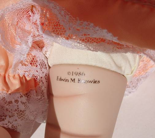 In good shape. In original box with paperwork. Some spots on fabrics: dress, hat, cloth body. Has been displayed behind glass - no pets, no smoke, no children.