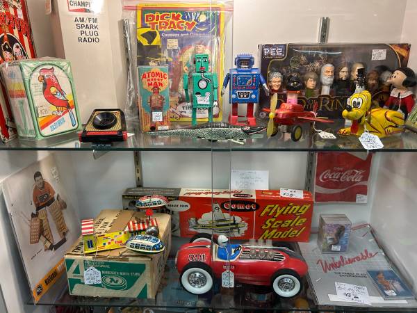 Do you love the "thrill of the hunt" when out in the "Wild" searching for vintage toys to add to your collection? SOME NEW ARRIVALS ARE: LUNCHBOXES, THERMOS', BOARD GAMES, TRANSFORMER-LIKE ROBOTS, VTG TOYS, CAP GUNS, STAR TREK PHAZER, TONKAS, VTG SPIDERMAN, HE-MAN/SKELETOR RADIO, PAINTED MARX FIGURES, MONSTERS IN YOUR POCKET, STAR TREK FIGURE ON CARD, BATMAN CRAYONS, AND MUCH MORE.