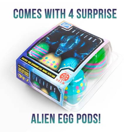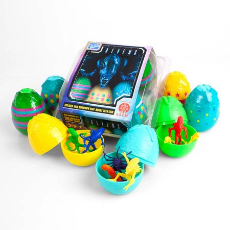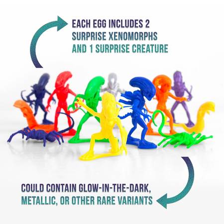 • Alien Easter Eggs 4-pack of 3-inch Egg Pods. Each package comes with 4 eggs. Each egg contains 2 random Xenomorphs and 1 random creature.
