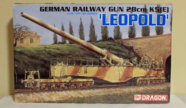 Dragon's model kit of the giant WWII German Railway Gun 'Leopold.' This is a big kit. Plus two figure kits to go with it. All kits are new in the boxes.