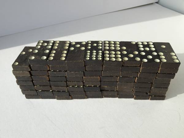 A great set for either providing replacement pieces to another set, or perfect to use for domino falling since the edges are flat. Or to repurpose for jewelry, crafts, key chains, domino dolls, scrapbooking, or artwork. They have been well used and show fantastic patina and age.