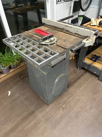 Rockwell 9” contractors table saw. This saw has a cast iron top and belt driven 1 hp motor for smooth cuts. Unit is in complete working condition.
