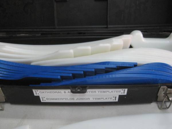 I have (2) sets of cathedral-arch templates for door making and panels. The white and blue sets will do from 9"-22" panels, both sets are brand new never been used. The orange set is not for sale. The plastic tool box is for sale if someone buys both sets $20.00. Large template sets are $75.00 per set. Call Tux @ 651 7zero7 6920 Thanks