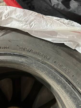 Used one season, less than 2000 miles. Manufacture date 2723. Size 215/60R16 95H. Winter may be coming, but you can be ready for any challenge the harshest season brings your way when you outfit your car, crossover or minivan with a set of Bridgestone Blizzak WS90 tires. Mazzi alloy rims are older, 2015. Mazzi products are created with only the highest grades of aluminum and alloys available to yield extremely strong and durable results. Includes 22 six spline M12x1.5 lug nuts (adapter not included).