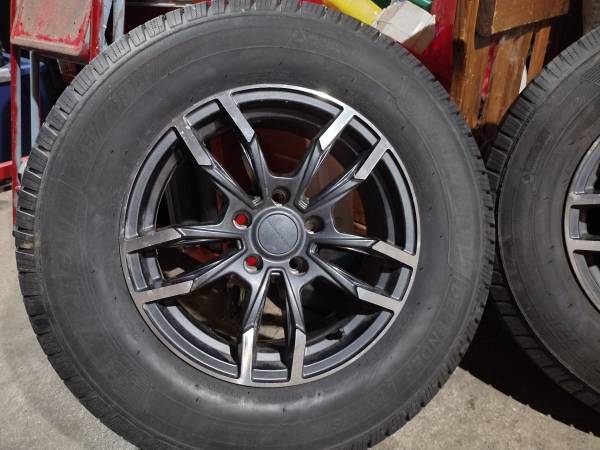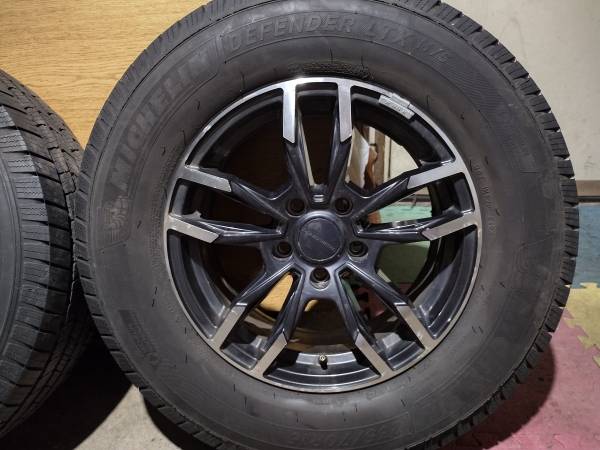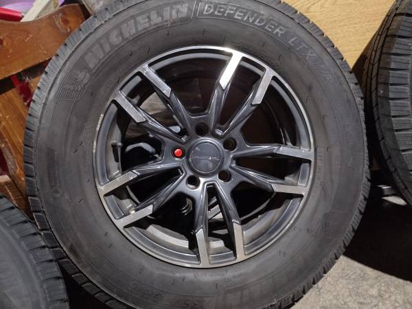 For sale used and in great shape Michelin Defender LTX M/S 235/70R16 tires 2 almost new and 2 about 3 years old. All have plenty of tread on them. mounted on 17" LIQUIDMETAL black and chrome rims...