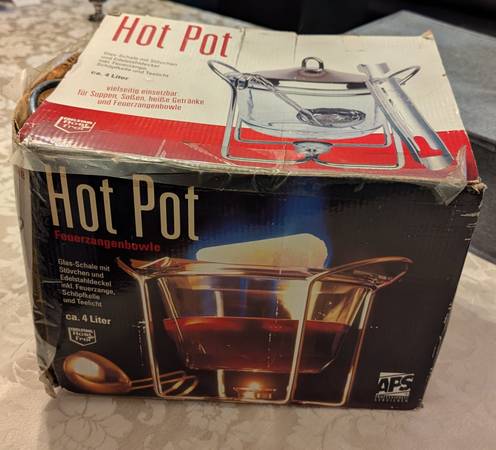 Bowl setup for making mulled wine in the Feuerzangenbowle manner. For information on it, see https://en.wikipedia.org/wiki/Feuerzangenbowle