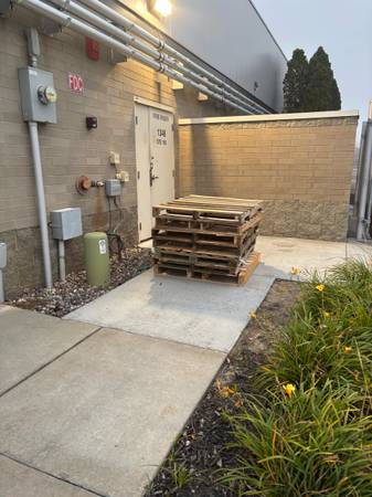 Free pallets for pick up at 1348 town Centre Dr. Pallets are in back post will be removed when gone.