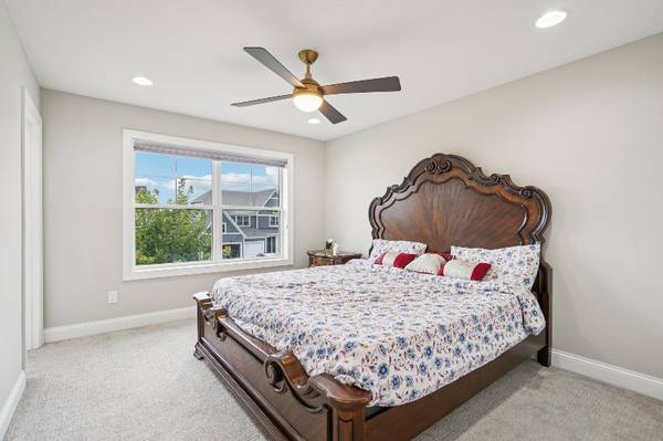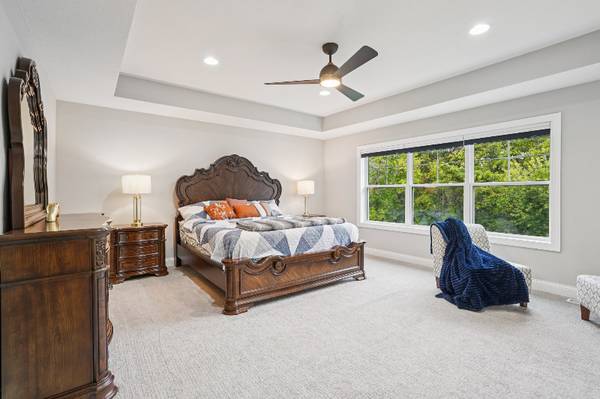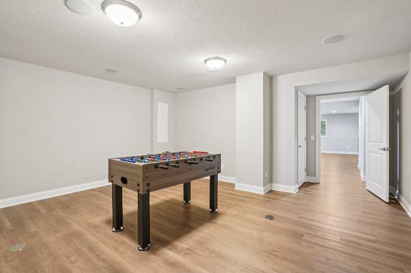 Experience refined living in The Wesley, ideally situated homesite that backs onto mature trees, providing both privacy and serene views, along with the benefit of solar panels. The main level is designed with elegance and versatility in mind, featuring a spacious flex room and an additional resource area. The heart of the home is the open-concept gathering space, equipped with smart window shades and anchored by a gourmet kitchen that includes a wine bar and upgraded finishes. Upstairs, you will find four generously sized bedrooms and a versatile bonus room equipped with 5-in-1 speakers. Two of the bathrooms feature a convenient Jack-and-Jill layout, while the luxurious primary suite serves as a true retreat, complete with a walk-in shower, a freestanding soaking tub, and a private vanity sitting area enhanced by custom cabinetry. The lower level is equally impressive, offering a stylish family room, a wine bar, a guest bedroom, a full bath and a media room with 7-in-1 speakers.