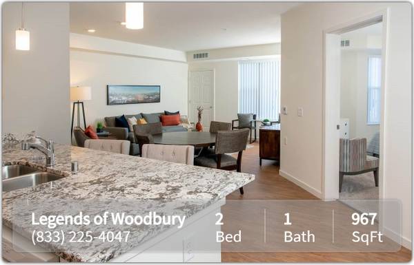 Affordable Apartments at Over $450 Less Per Month Than Nearby Communities! The Legends of Woodbury brings independent living for adults 55 and older to your neighborhood! Our community offers spacious one, two and three bedroom apartment homes. Conveniently located near parks, shopping, and restaurants.
