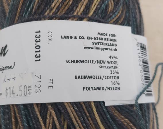 New from smoke free home. 49% wool 35% cotton 16 % nylon. Brown/blue mix