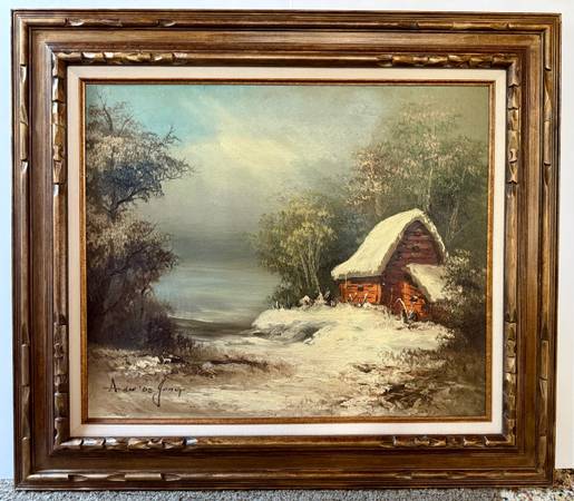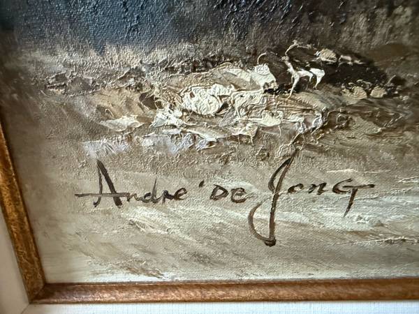 Vintage oil by Dutch artist Andre de Jong. Canvas is 20” x 24”, and including the solid wood frame is 30” x 28.5”. Ready to hang with wire. If interested, suggest a day & time you can see it....