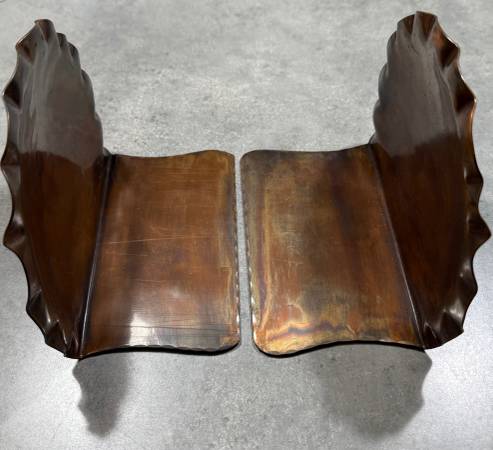 Hand wrought copper seashell bookends by Rochester Metalcraft Gorgeous and heavy for size (437g) solid copper bookends with a shell design. Excellent condition and the copper is beautiful. Felt feet...