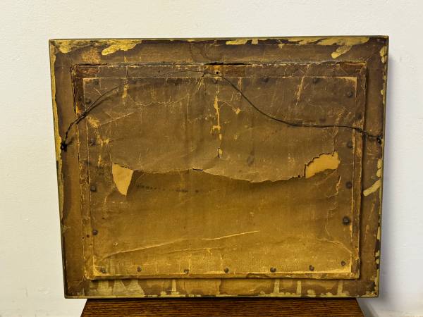 What a charming antique painting! Such playful antique paintings are getting hard to find: oil on canvas; late 1800’s to very early 1900’s; very good condition for age; 16” by 13” frame, 13” by 10”...